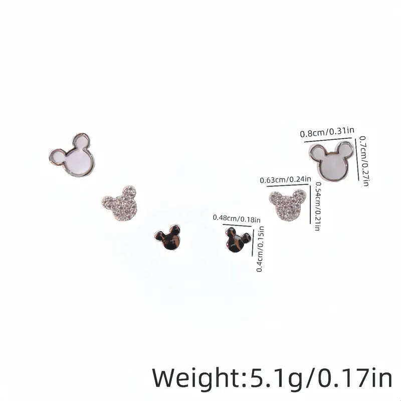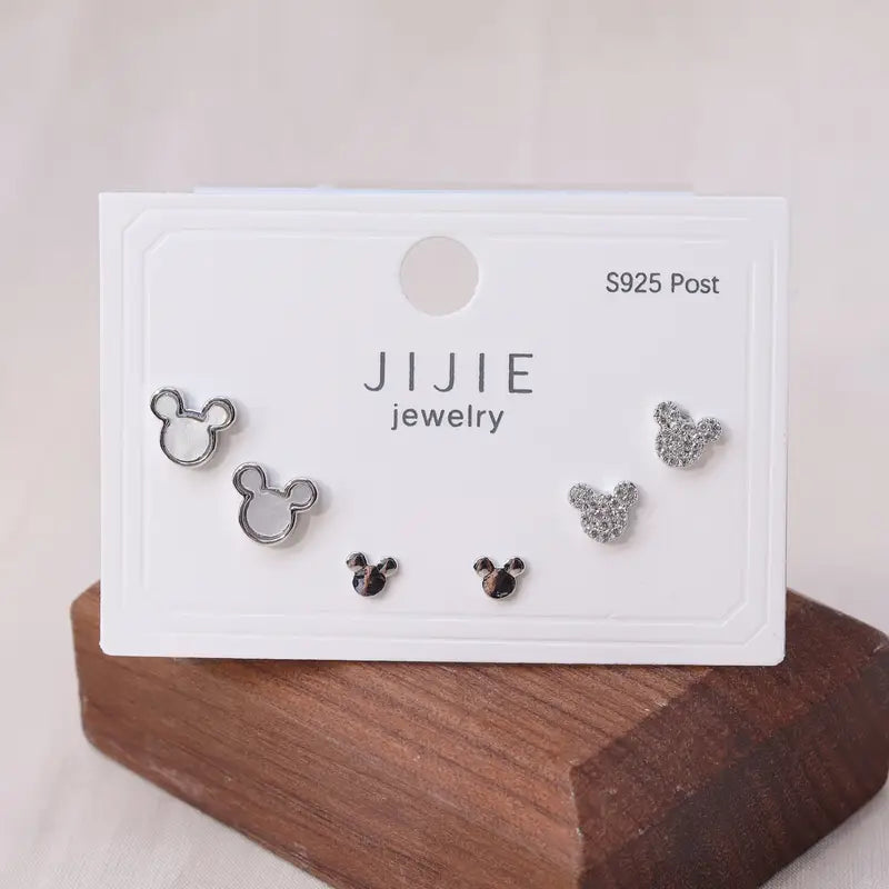Rinkinyje – trys skirtingo dizaino auskarų poros su "Disney Minnie Mouse" siluetais: klasikiniai, žvilgantys su sintetinio cirkonio kristalais bei minimalistiniai juodi.